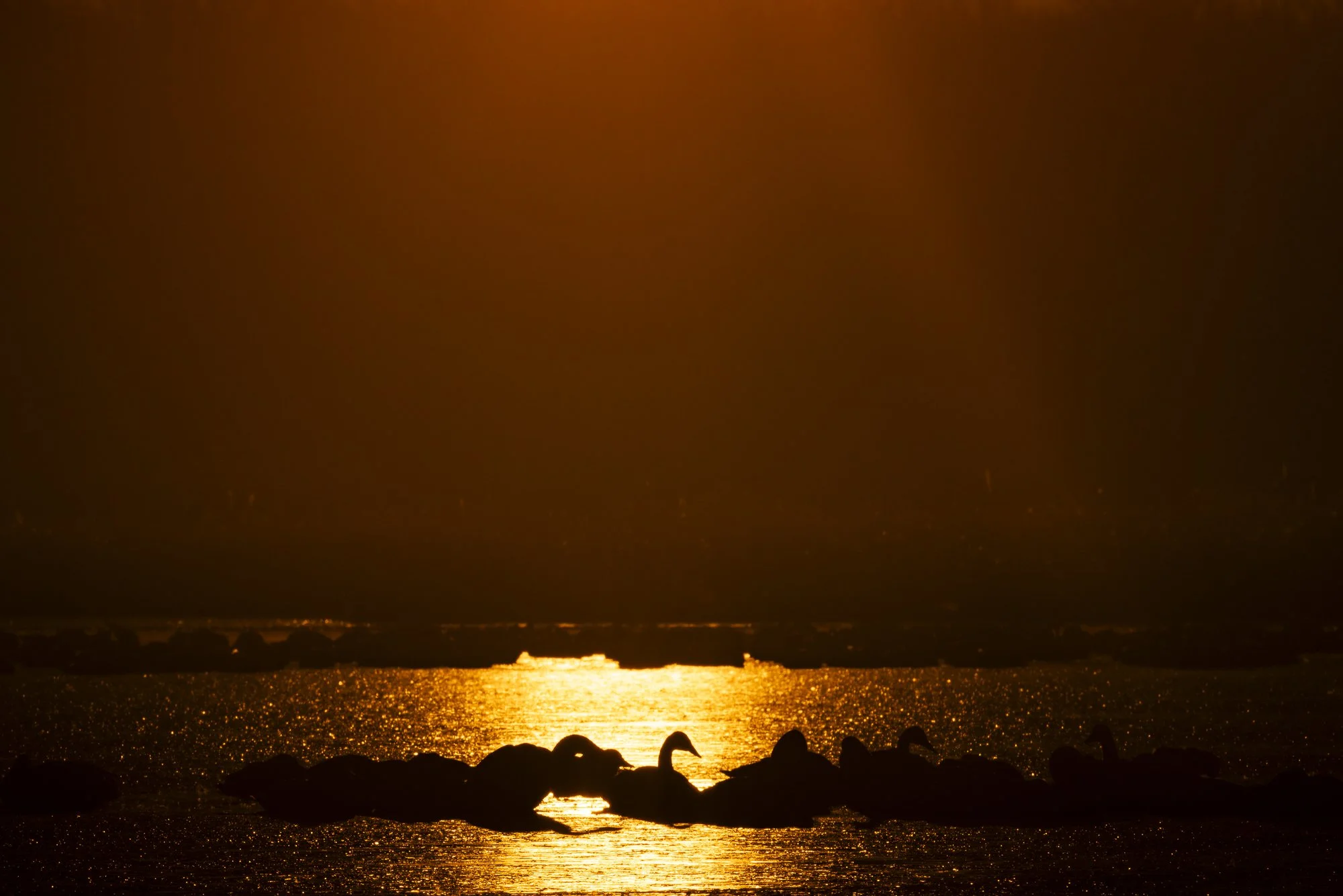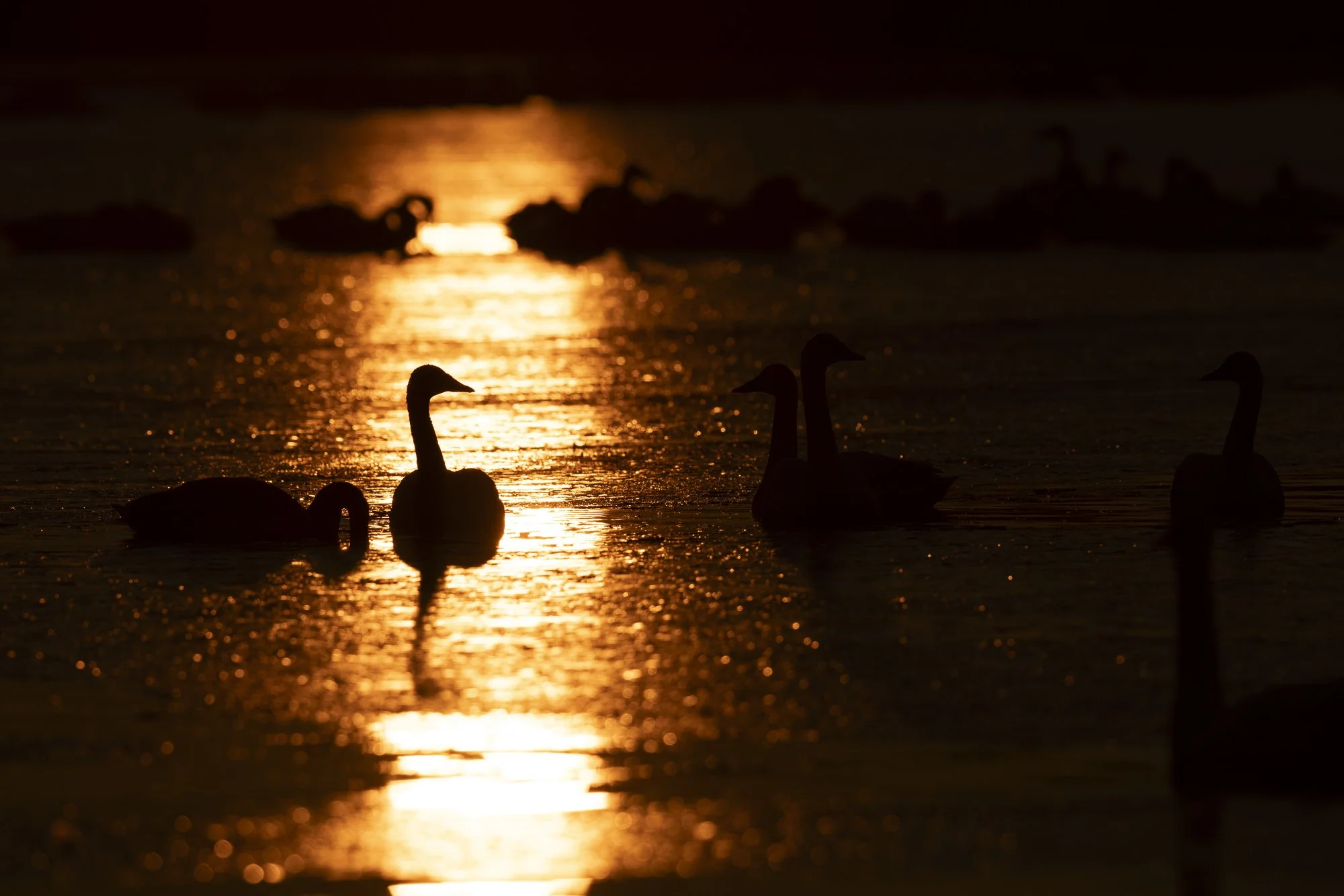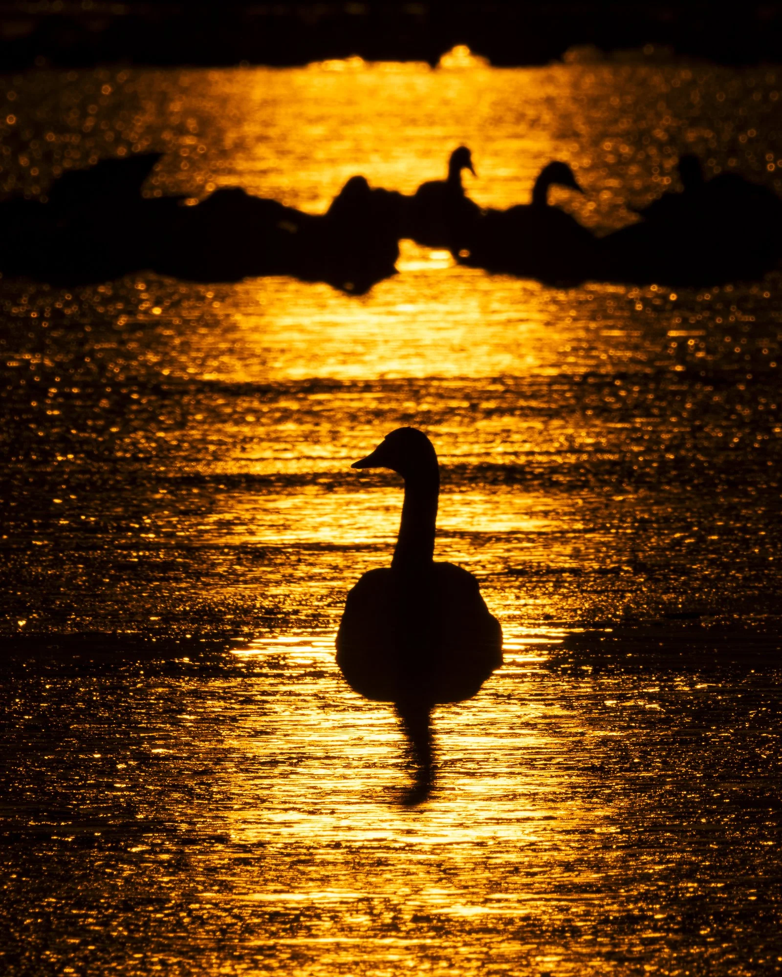 In the photos above, the swans aren’t about details in the feathers or eye sharpness—they’re about form. Silhouettes force you to see animals as graphic shapes first, with your eye being directed to the darkest & lightest part of the frame. Light defines the edges. Instead of just “there are swans on the water,” the real subject here is the light reflecting across a surface. The glowing water creates mood, depth, and direction all on its own. Strong environmental light can replace dramatic skies or perfect action. Sometimes the background is the story.