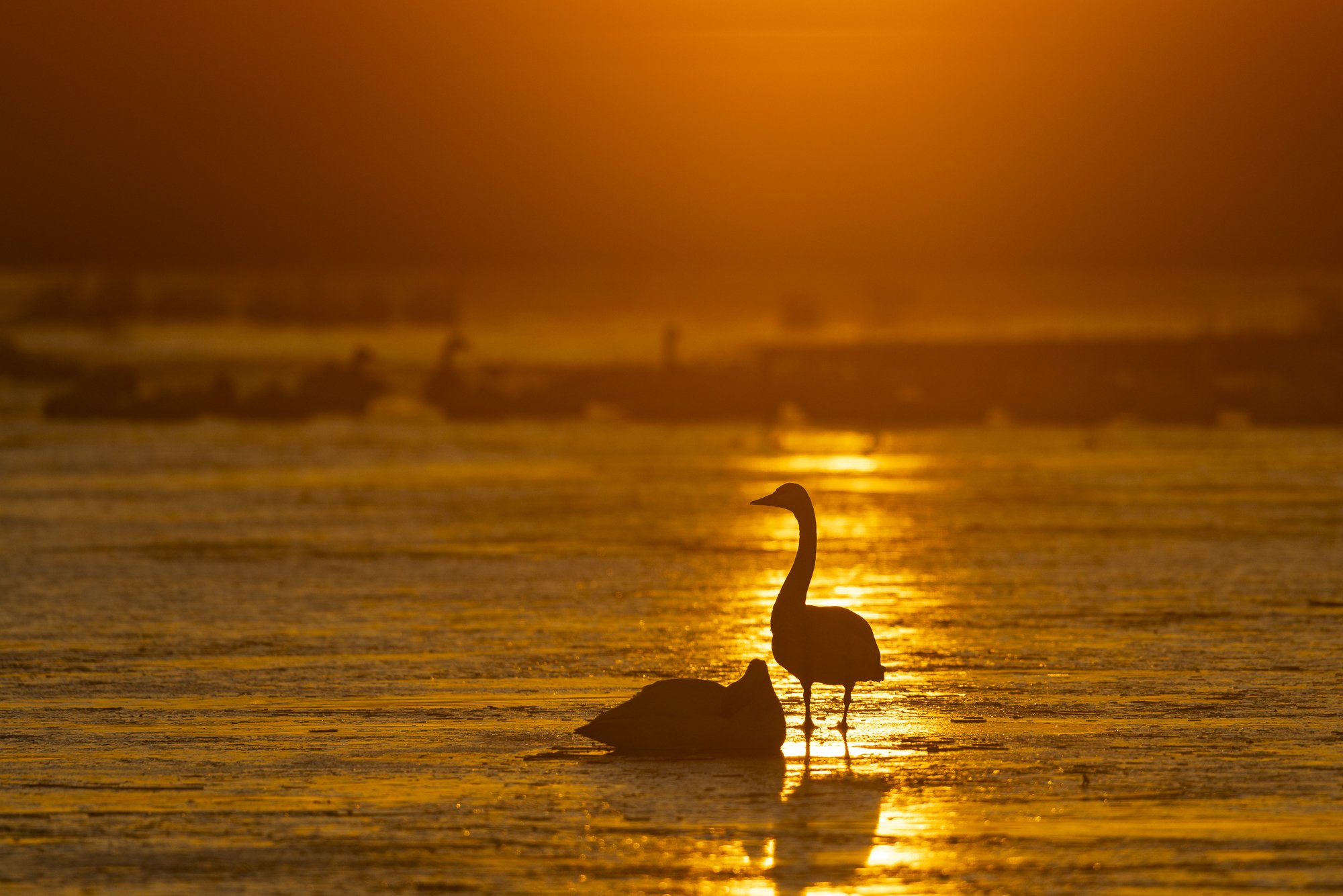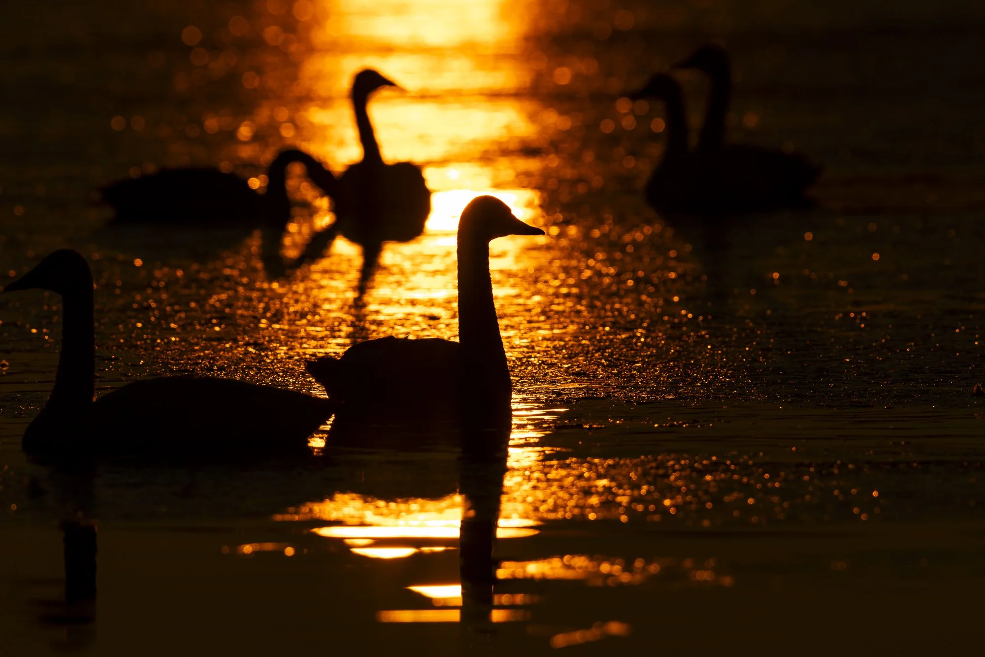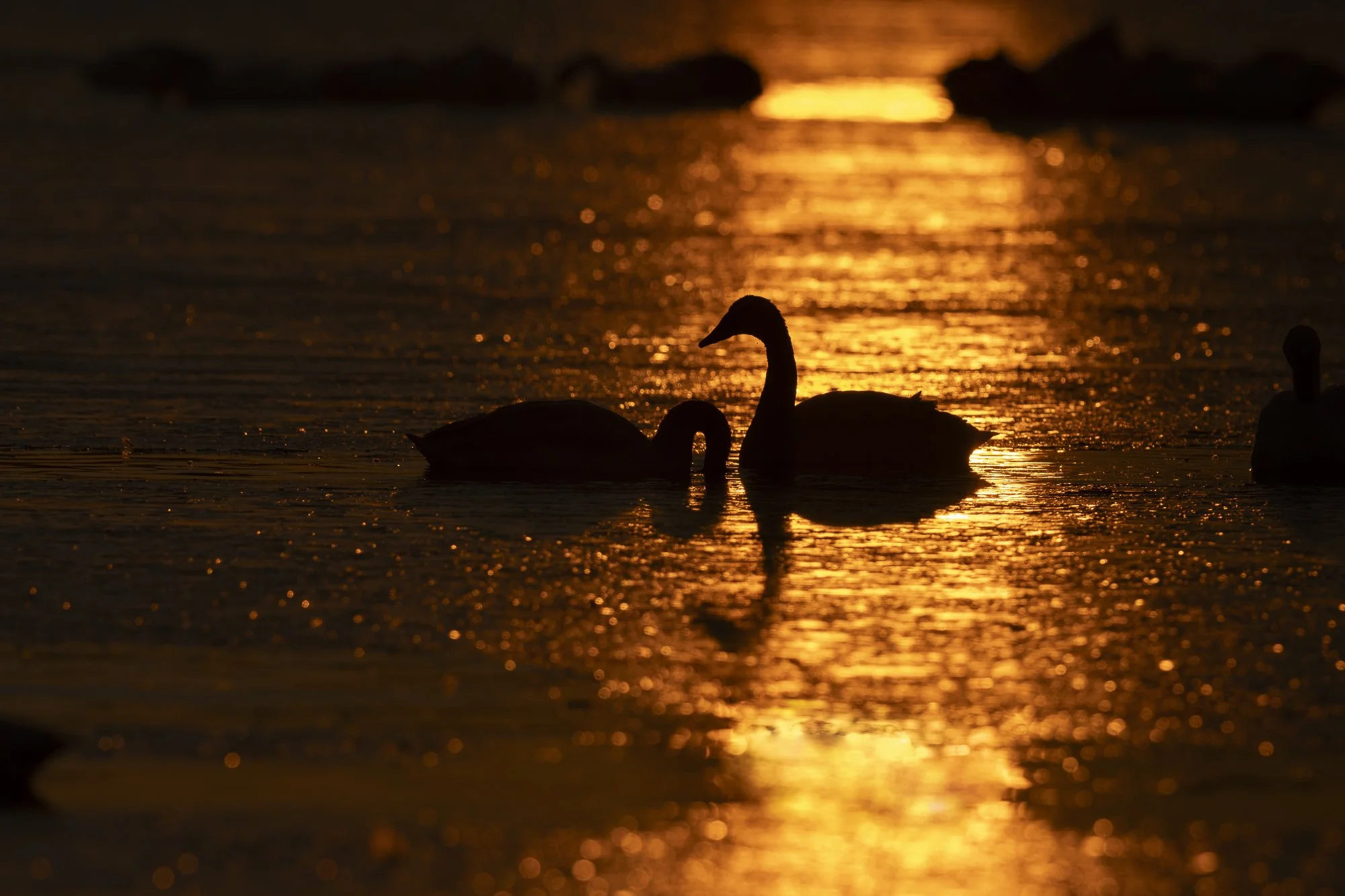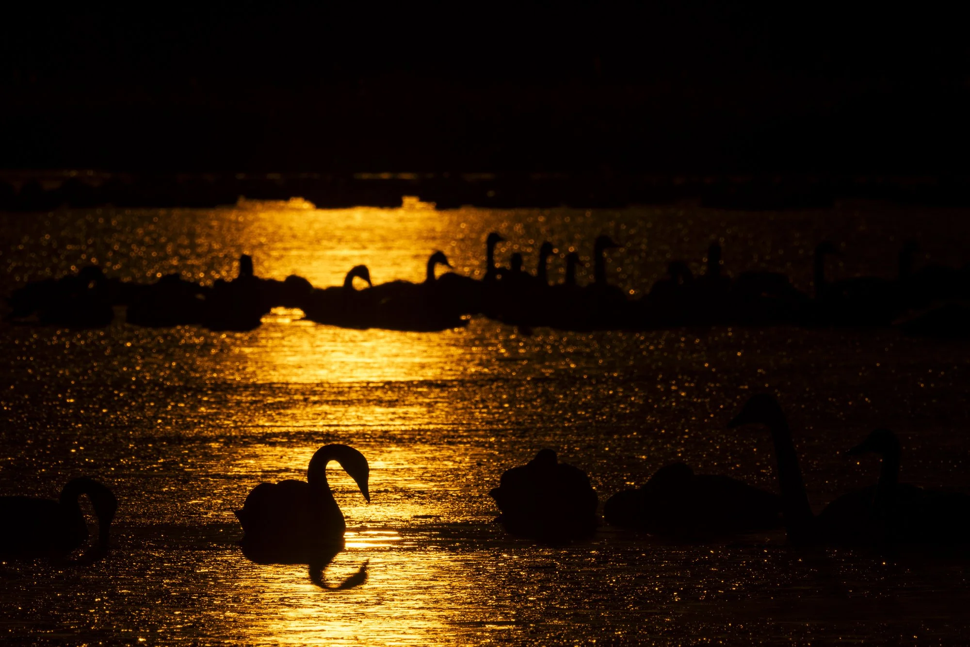 In the photos above, the swans aren’t about details in the feathers or eye sharpness—they’re about form. Silhouettes force you to see animals as graphic shapes first, with your eye being directed to the darkest & lightest part of the frame. Light defines the edges. Instead of just “there are swans on the water,” the real subject here is the light reflecting across a surface. The glowing water creates mood, depth, and direction all on its own. Strong environmental light can replace dramatic skies or perfect action. Sometimes the background is the story.